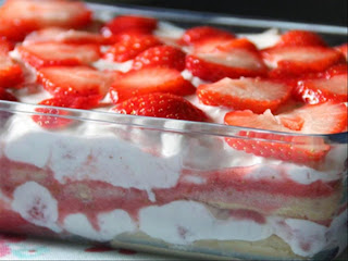 Desenforme e cubra com uma camada generosa de geleia de amora.Utilizar sempre a mesma medida, copos ou xícaras.Sirva com geleia de morangos, amora.